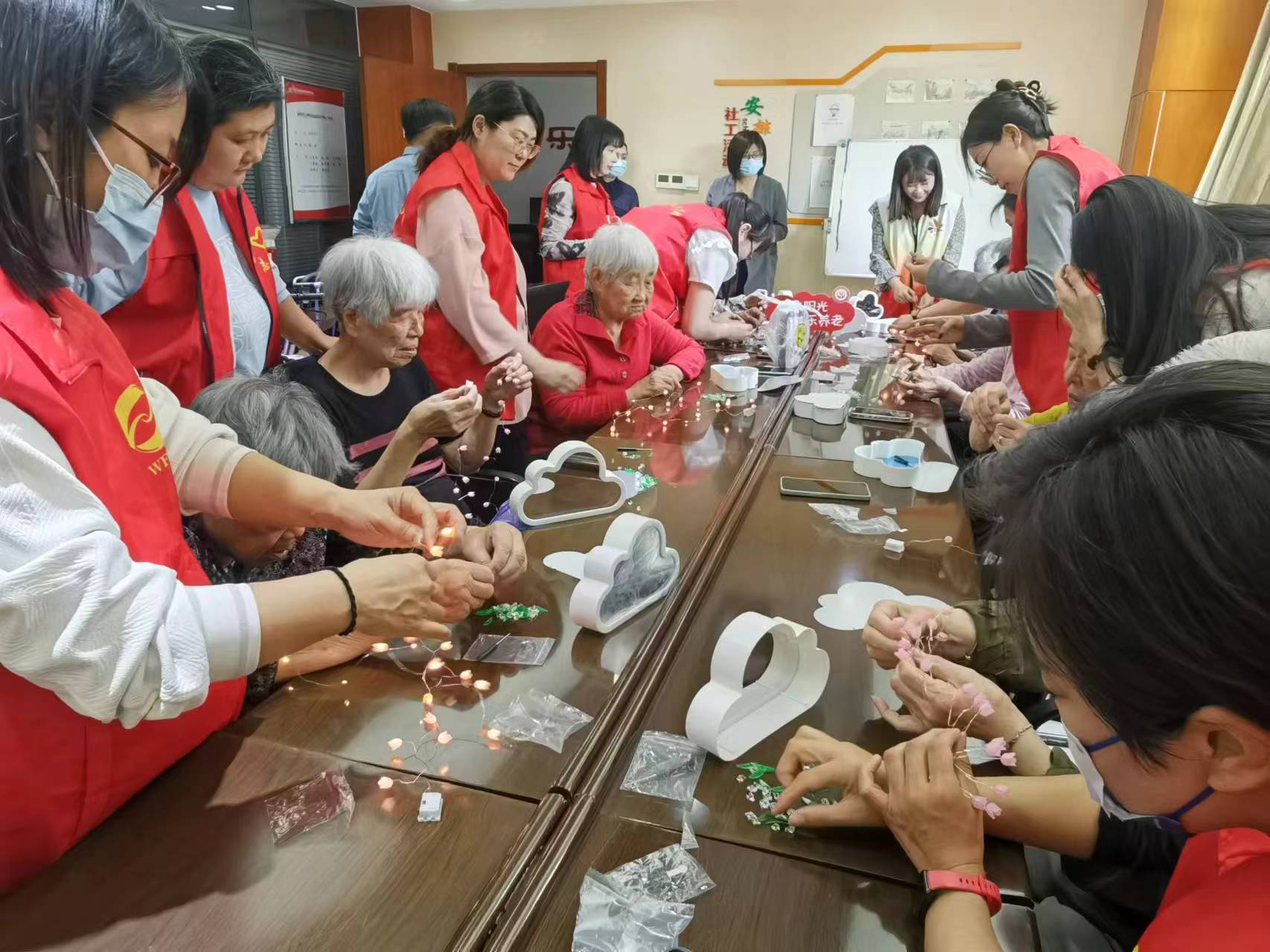 5月10日下午,黨員代表為金色陽光養老服務中心老年人送上母親節祝福。活動現場,黨員代表與老人們共同制作了郁金香花燈,在一片歡聲笑語中,他們或低頭專注手工,或輕聲交流心得,或互相欣賞對方的作品,一面面郁金香鏡子就這樣在他們手中綻放了。活動最后,老人們與黨員代表共同合唱了紅色歌曲,為節日增添了一抹絢麗的色彩。